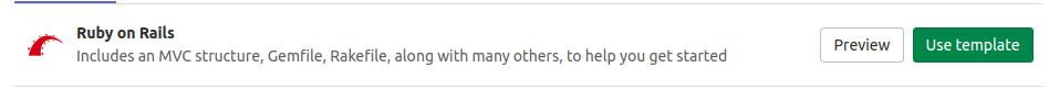 Select Create from template, where you can choose from a Ruby on Rails, Spring, or NodeJS Express project. For this guide, use the Ruby on Rails template.