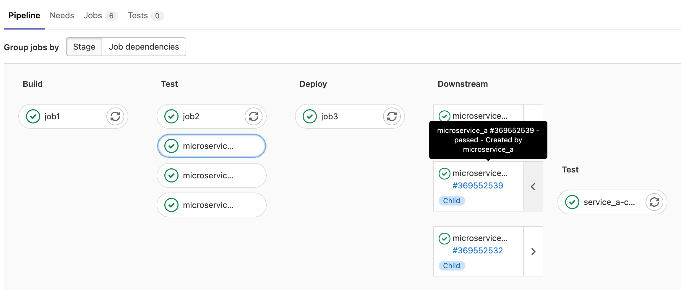 - Child pipelines still execute each of their jobs according to a stage sequence, but would be free to continue forward through their stages without waiting for unrelated jobs in the parent pipeline to finish.